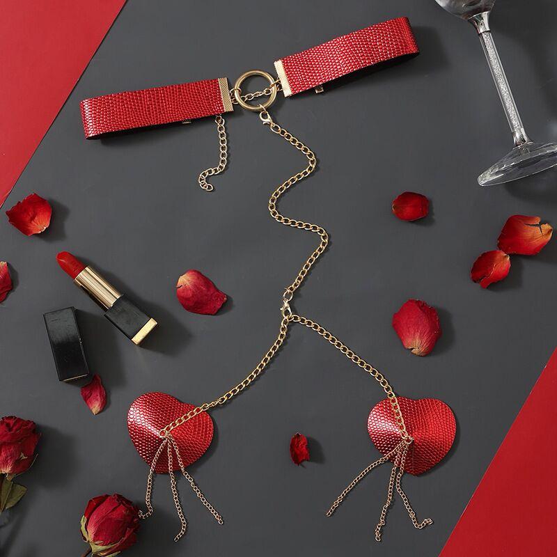 Пестіси-сердечка на соски з пензликами і чокером червоні JSY RT236114 Talla